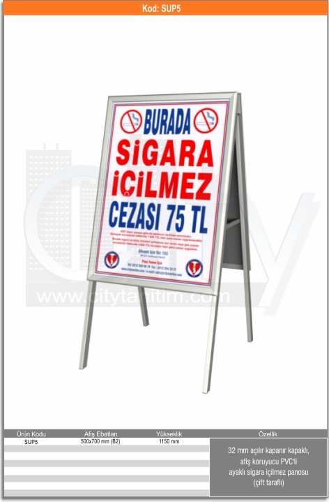 Ürün kodu : SUP9 Ayaklı sigara içilmez panosu A4 |